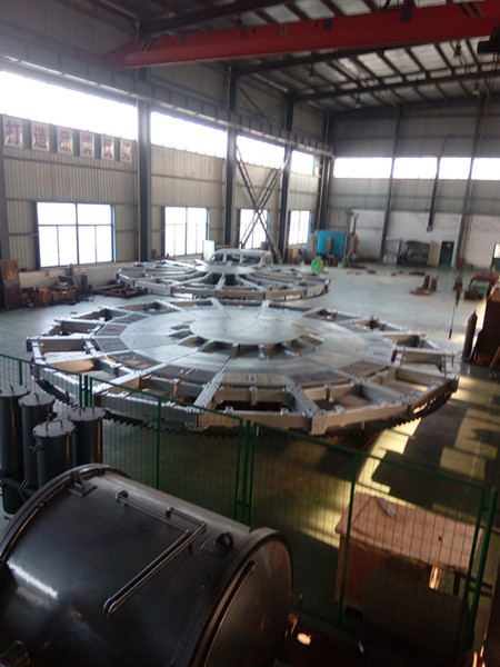 近期,我公司與與遼寧營(yíng)口盛?;び邢薰竞炗喴惶兹詣?dòng)定量式圓盤(pán)澆鑄機制作安裝合同。該圓盤(pán)澆鑄機為16模雙圓盤(pán)結構,采用鉤取方式取板。目前,該設備已經(jīng)在公司內部完成加工和組裝工作。