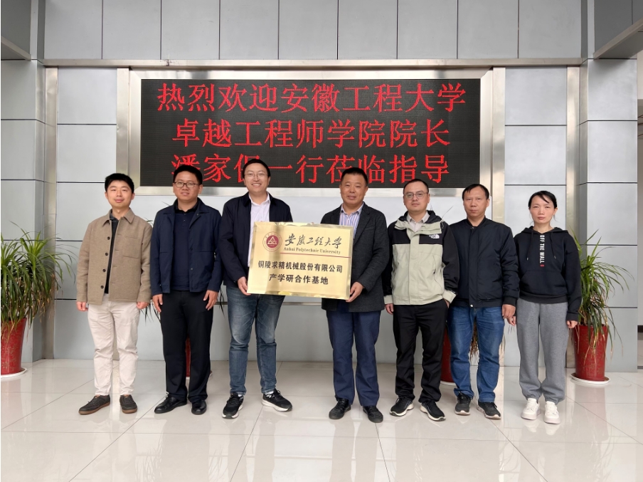 2024年11月9日安徽工程大學(xué)卓越工程師學(xué)院執行院長(cháng)潘家保代表該校正式授牌我公司為該校產(chǎn)學(xué)研合作基地,同時(shí)聘任我公司副總經(jīng)理萬(wàn)林應同志為安徽工程大學(xué)客座教授。